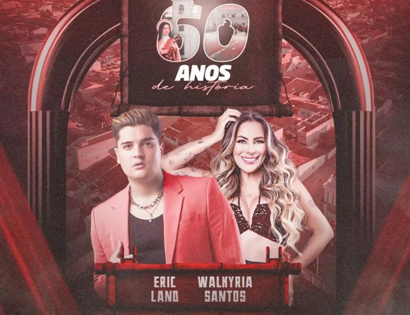 Dois renomados artistas, Eric Land e Walkyria Santos, estão confirmados como atrações para animar as comemorações em alusão ao aniversário de 60 anos de emancipação política da cidade de Santa Terezinha. Os shows estão programados para acontecer no Pátio do João Pedro na sexta-feira (12). Uma ampla estrutura com palco e iluminação será instalada pela